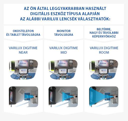 - Egyszerre többféle elektronikus kijelzőt használó presbiopoknak, akik gyakran váltogatják is ezeket az eszközöket.